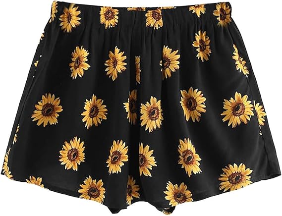 Abassky Short Feminino Sexy Estampa De Girassol Cintura Alta Short