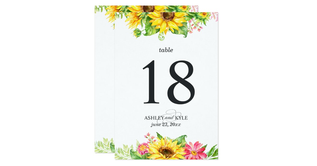 Convite Numero Da Mesa Do Girassol Com Fundo Branco Zazzle Com Br