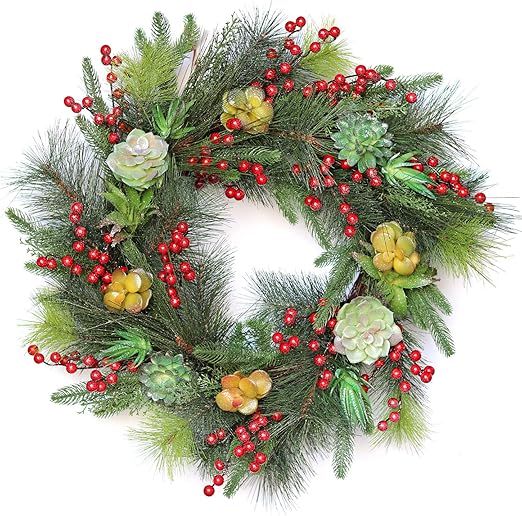 Amazon Com Wscrofts 26 Inch Christmas Wreath Mixed Succulents