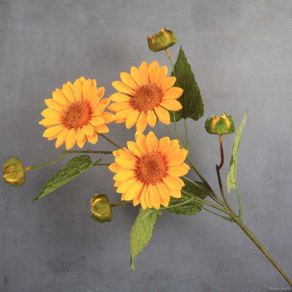 Haste De Girassol Artificial Com 3 Flores Realista No Elo7