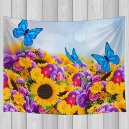 Girassol Amarelo Borboleta Azul Para Adultos Jogo De Cama Rainha