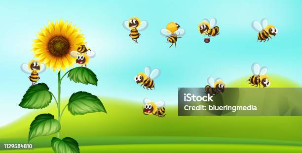 Vetores De Abelhas Voando No Jardim Girassol E Mais Imagens De