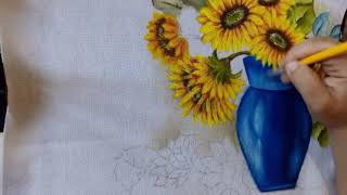 Girassois Vaso Com Stencil Parte 04 Pintura Em Tecido Youtube