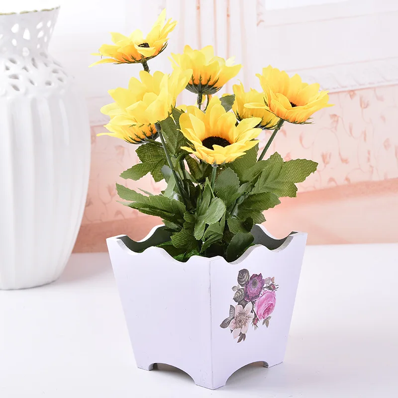 2017 Girassol Artificial Com Quadrado Vasos De Flores De Madeira