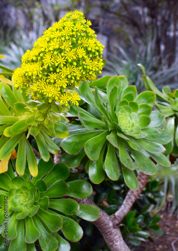 Aeonium Arboreum Succulent Plant With Large Conical Yellow Flowers