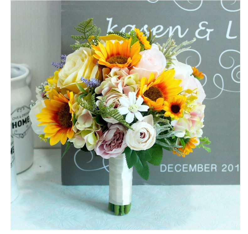 Compre Janevini Artificial Girassol Rosas Bridal Bouquet Amarelo