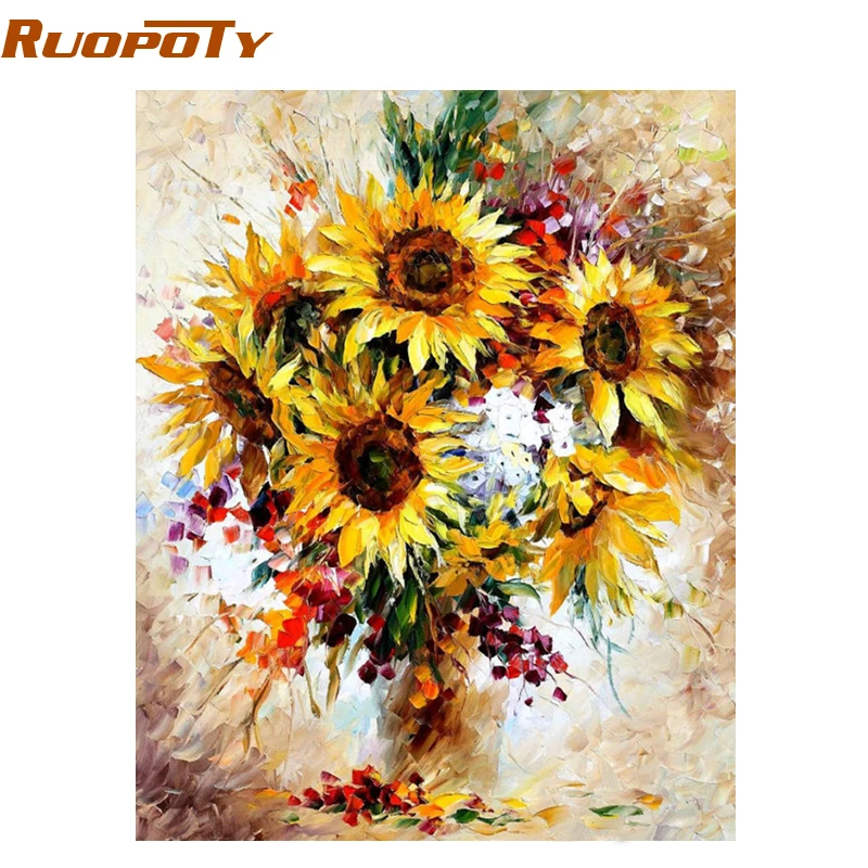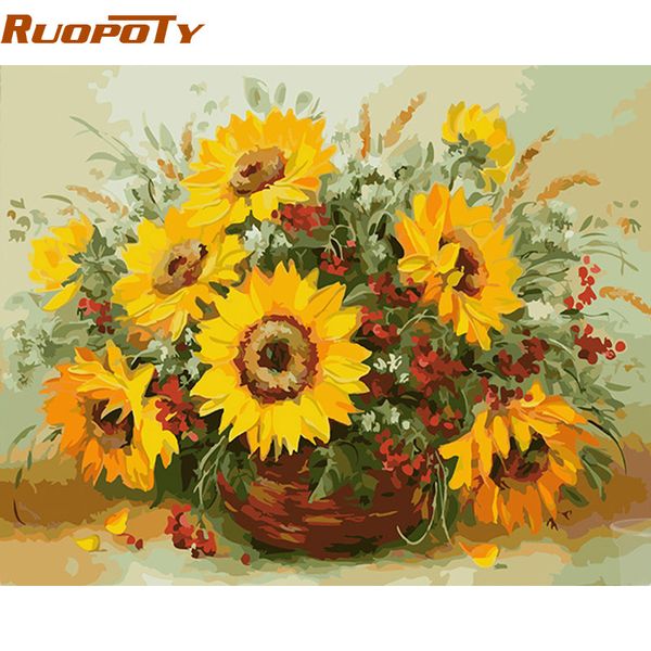 Quadro De Ruopoty Girassol Amarelo Diy Pintura Digital Por Numero