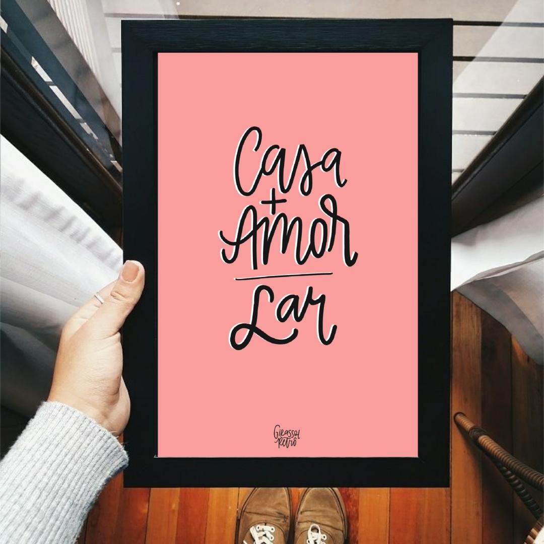 Quadro Decorativo Casa Amor Lar Leterring Com Moldura Girassol