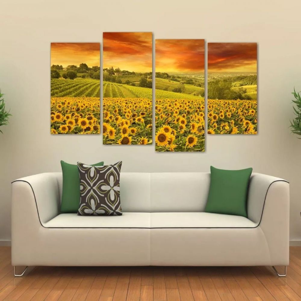 Sem Quadro De Parede Fotos Para Sala Estar 4 Pecas Girassol Oleo