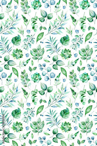 Watercolor Green Illustration Seamless Pattern With Succulent