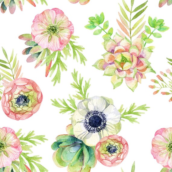 Watercolor Succulent Plants Wallpaper Small Flowers And Etsy