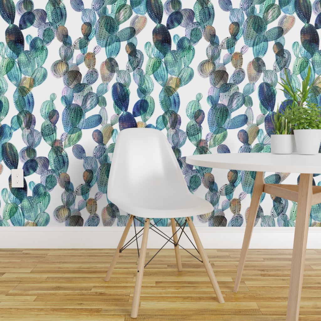 Watercolor Succulents Peel And Stick Wallpaper Peel And Etsy