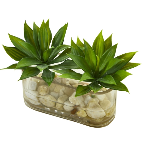 Mini Agave Succulent Artificial Arrangement In Glass Vase