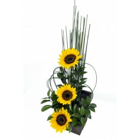Arranjo De Girassol Em Vaso De Vidro Quadrado