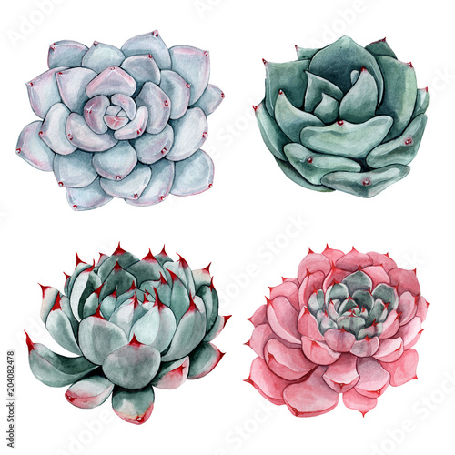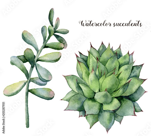 Watercolor Succulent Set Hand Painted Floral Illustration With