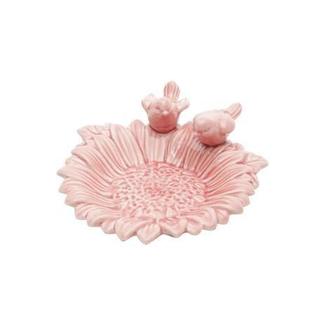 Prato Decorativo 15 Cm De Ceramica Rosa Com Passaros Girassol Lyor