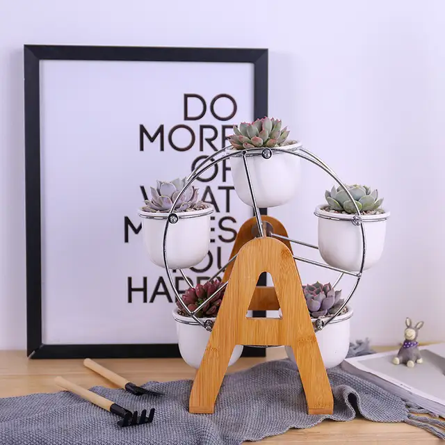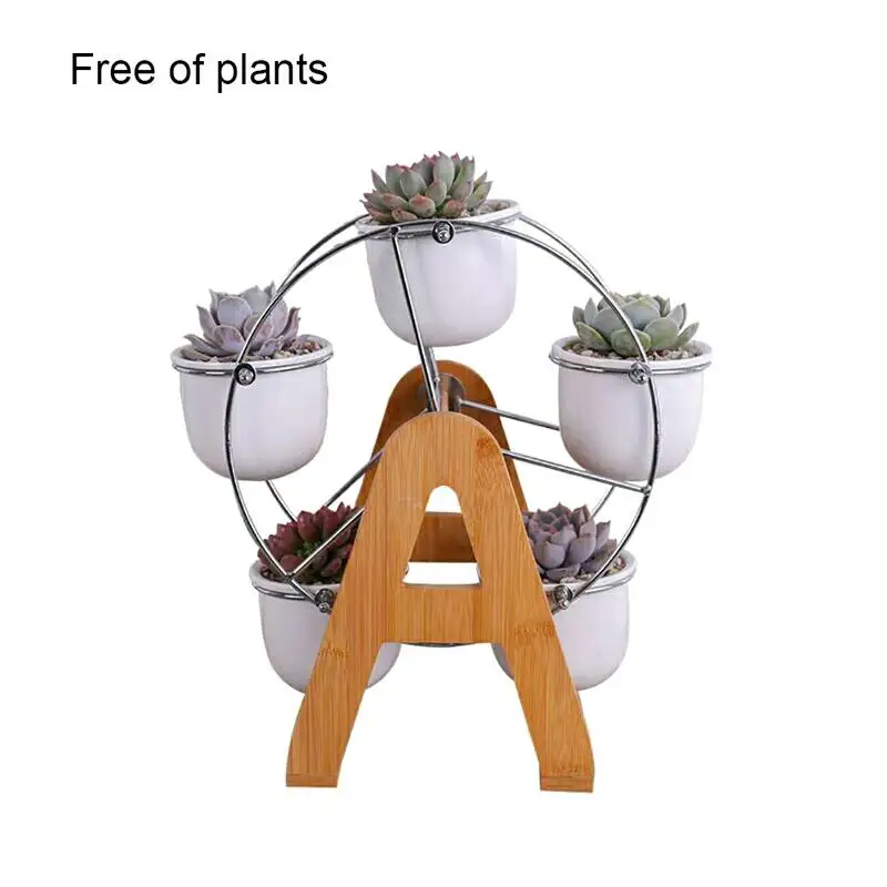 Desktop Succulents Planter Square Iron Rack Holder With Ceramic