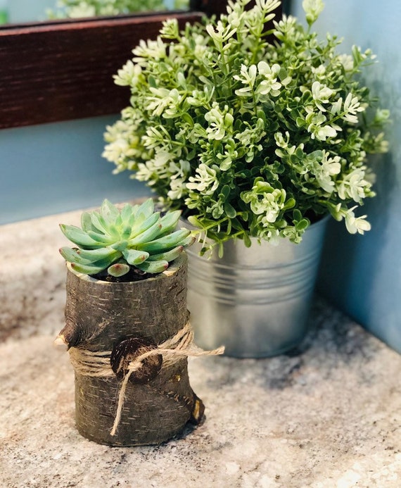Reclaimed Tree Branch Succulent Planter With Button And Twine Etsy