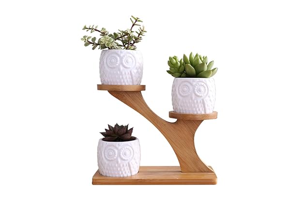 Buy 4pcs Planter With Holder Creative Bamboo Frame Ceramic Owl