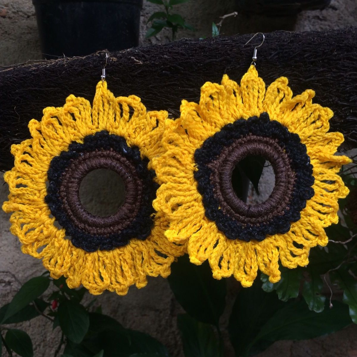Brinco Girassol Croche Bijuteria Feminina Nunca Usado 28905528