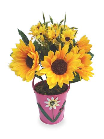 Girassol Arranjo Flor Artificial Com Balde Rosa Em Metal