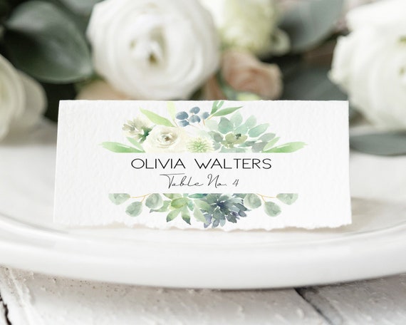 Greenery Wedding Place Cards Succulent Wedding Decor Etsy