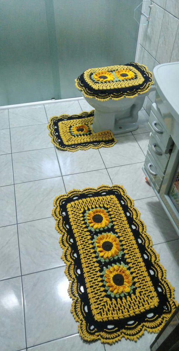 Kit De Banheiro 3 Pecas Tapete Girassol Brilho De Croche No Elo7