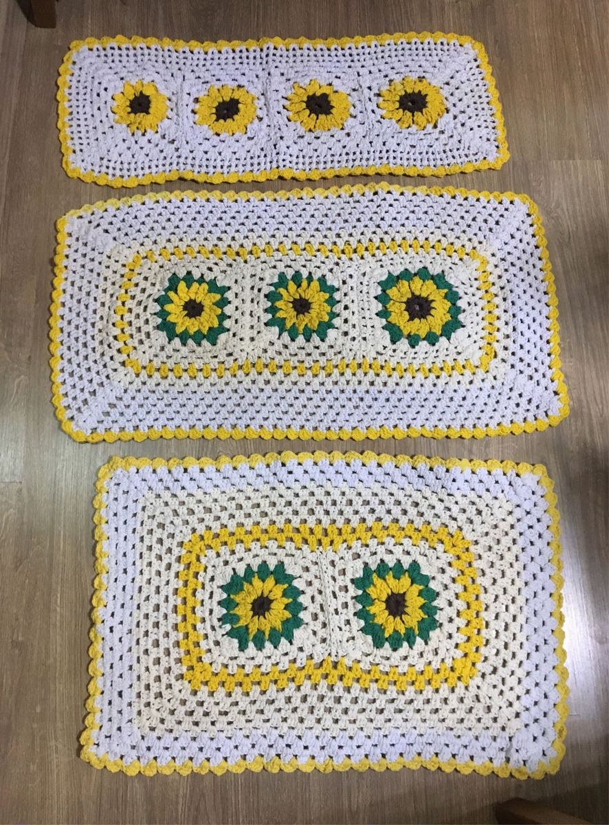 Jogo De Tapete Girassol Croche Movel P Casa Nunca Usado