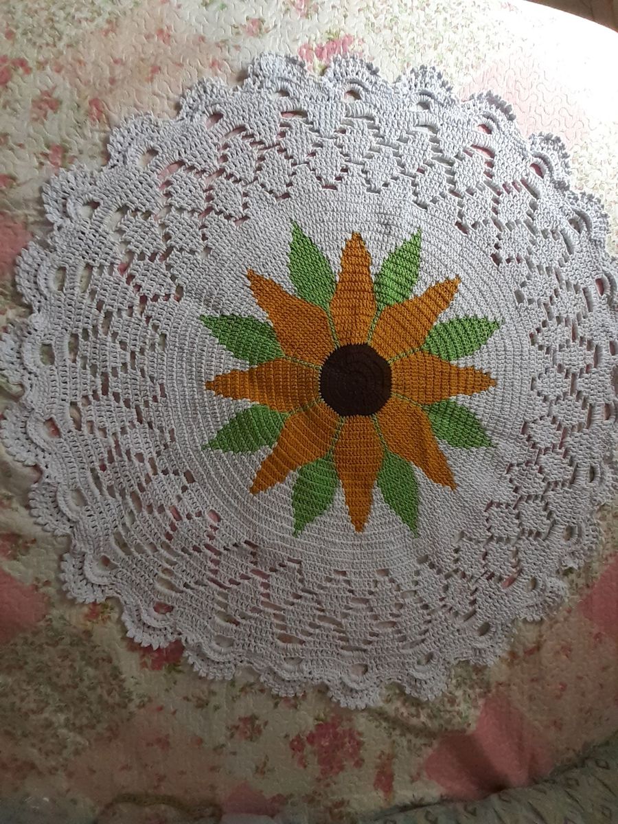 Tapete Girassol Em Croche Barbante Mesa Nunca Usado 38025708