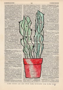 Cactai Bowl Dictionary Illustration Art Print Vintage Gardening