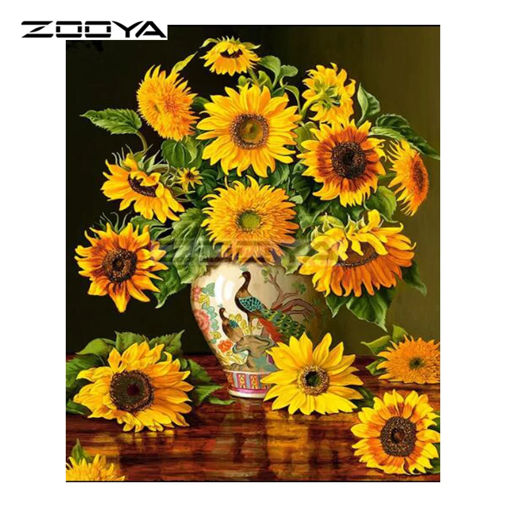 Zooya 5d Diy Diamante Bordado Flor Amarela Flor Girassol Vaso