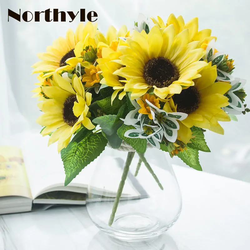Tz126361 Potted Falso Girassol Flores Artificiais Home Decor Vaso