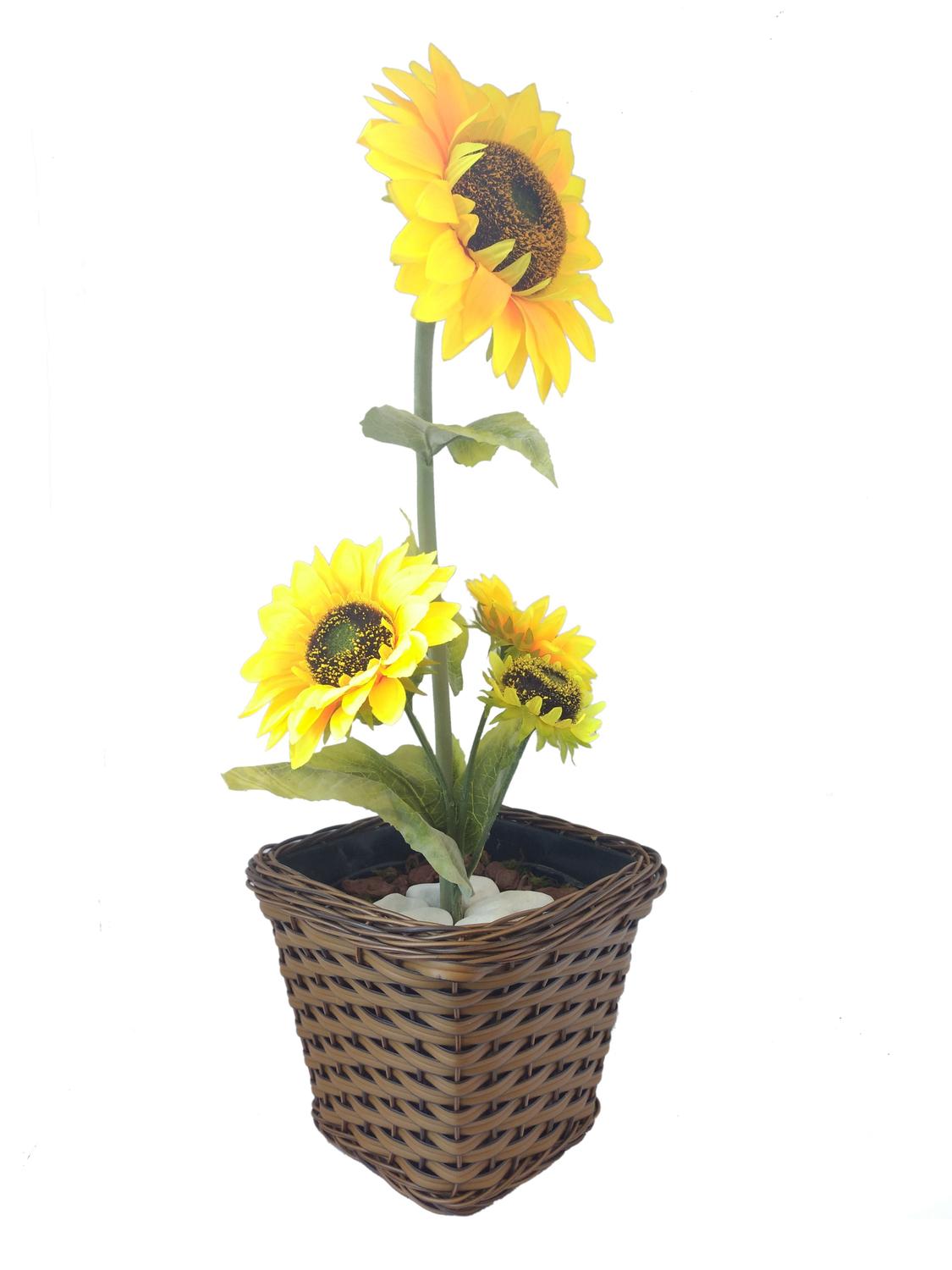 Girassol De Parede Arranjo Flor Artificial Com Vaso Marrom