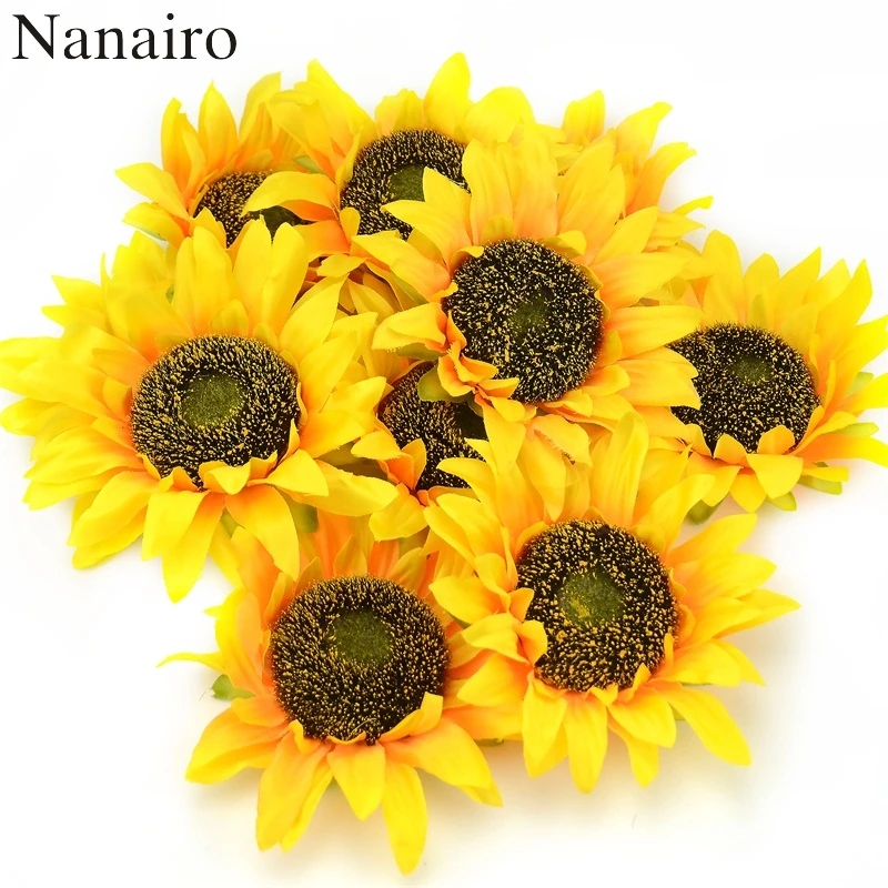 10 Pcs Lote 10 10cm Grande Girassol De Seda Artesanal Flores
