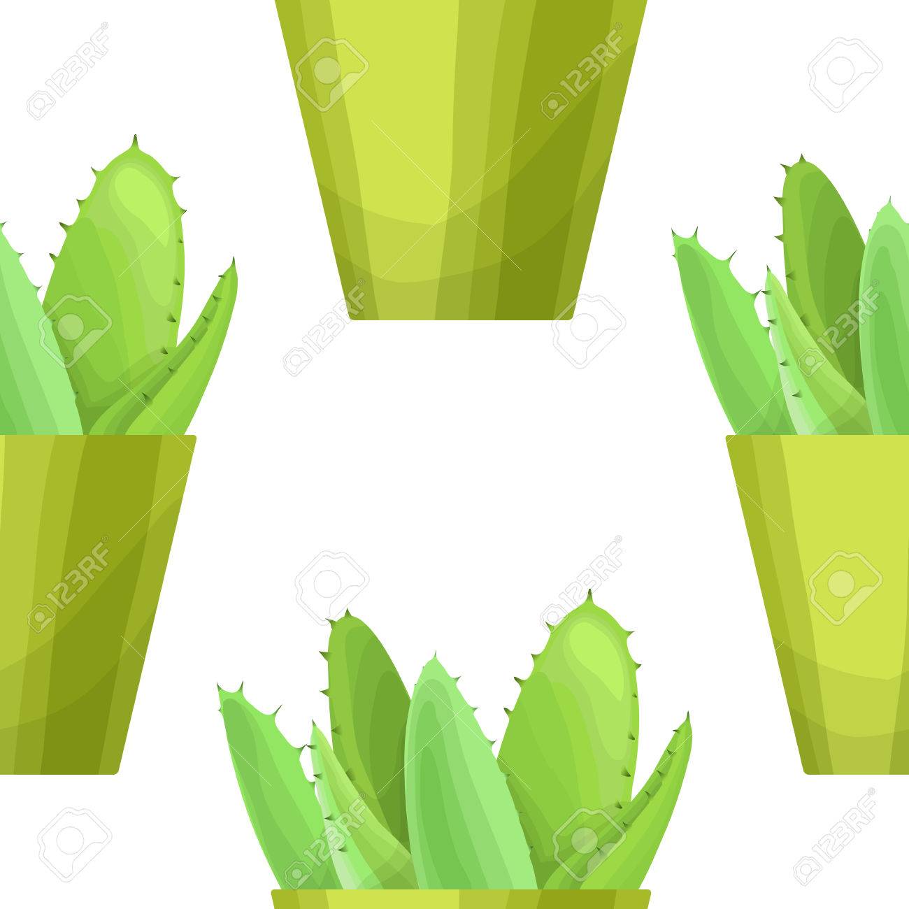 Succulent Floral Seamless Pattern Aloe Vera In Pot Floral