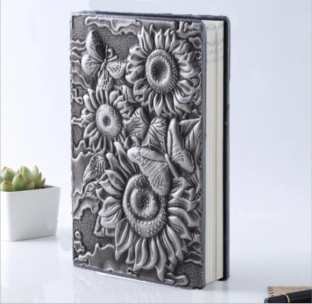 A5 Caderno De Couro De Girassol Em Relevo Retro Diario De Viagem