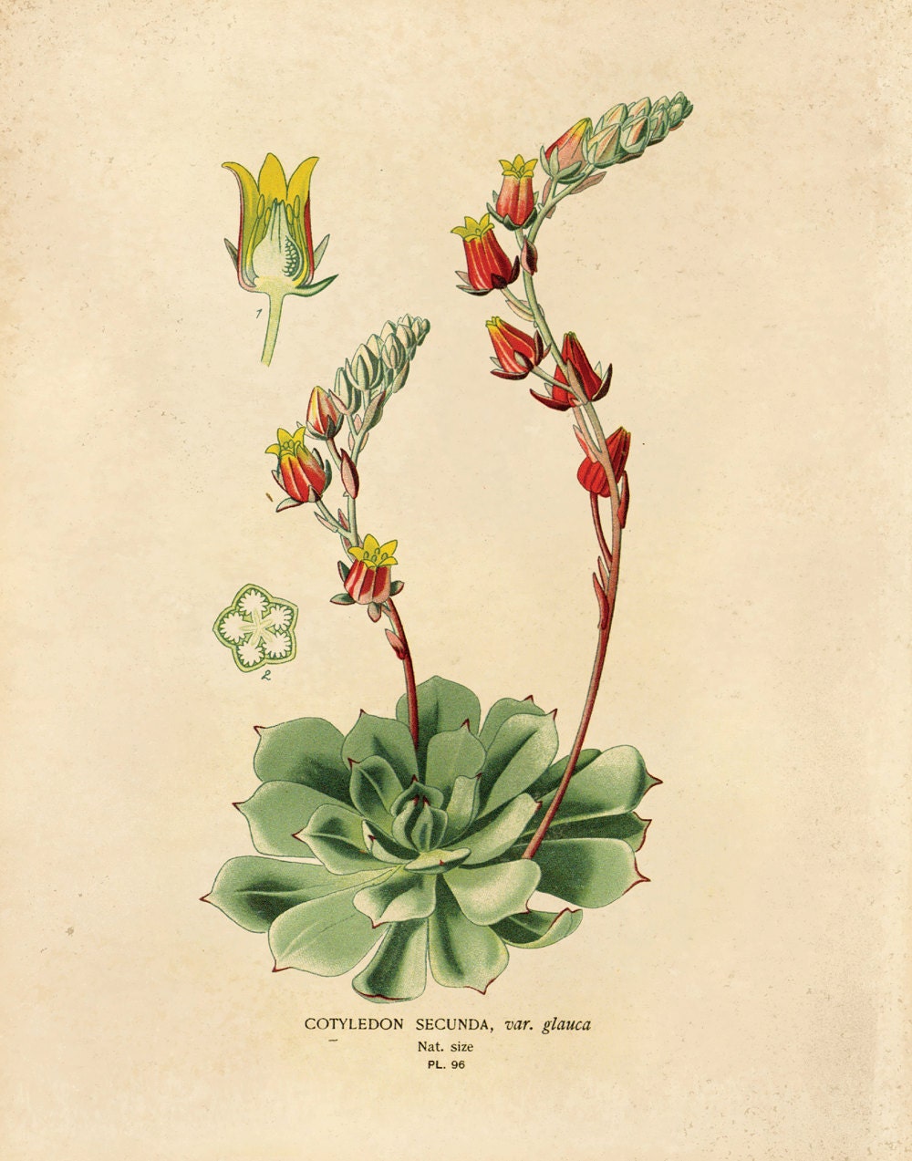 Vintage Succulent Blossom Print Botanical Desert Flowering Plant