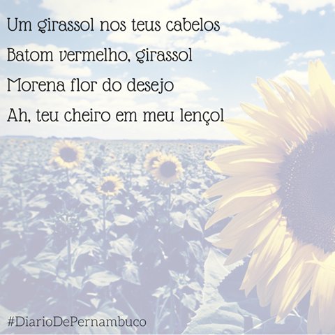Um girassol nos teus cabelos batom vermelho girassol morena flor do desejo ah teu cheiro em meu lencol desco pra rua sinto saudade gata selvagem sou cacador morena flor do desejo ah teu. Um girassol nos teus cabelos batom vermelho girassol morena flor do desejo. Playlist conta historia.