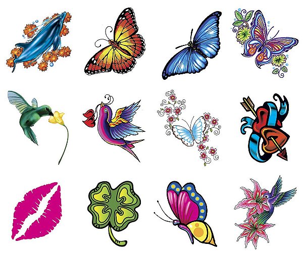 Tatuagem Temporaria 3d Real Borboletas Flores Rosas Girassol R