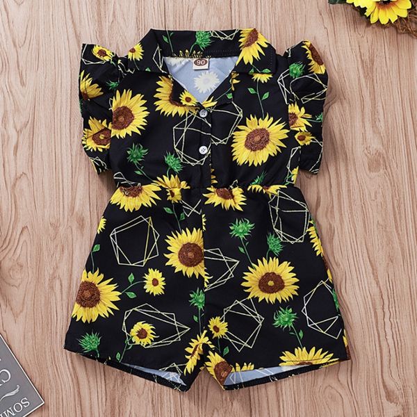 Compre Baby Girl Macacaozinho Girassol Impresso Crianca Macacoes