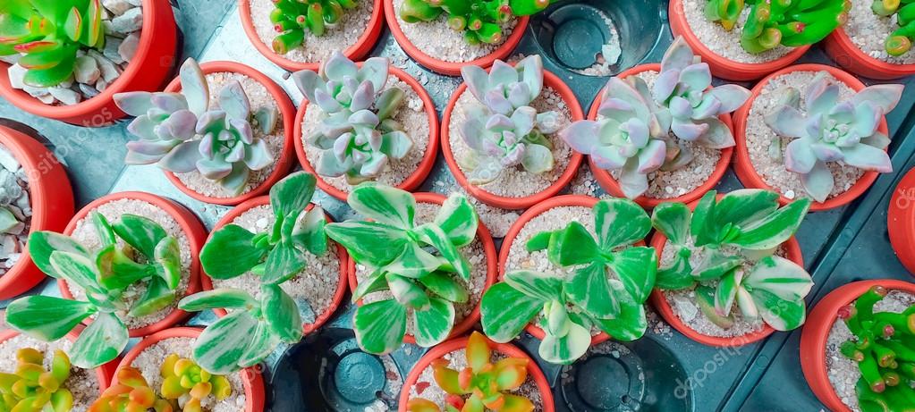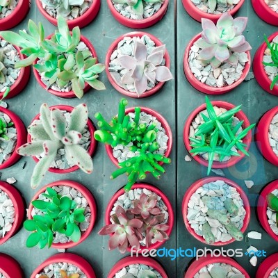 Small Various Green Cactus And Succulent Plant In Rose Red Color