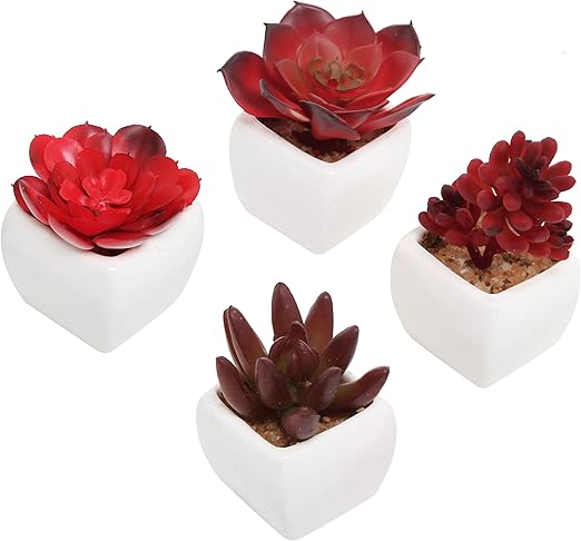 Amazon Com Mygift Red Artificial Succulent Plants In Mini Ceramic