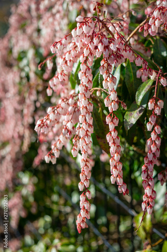 A Bunch Of Small White Bulbous Spring Flowers On Red Stems Among
