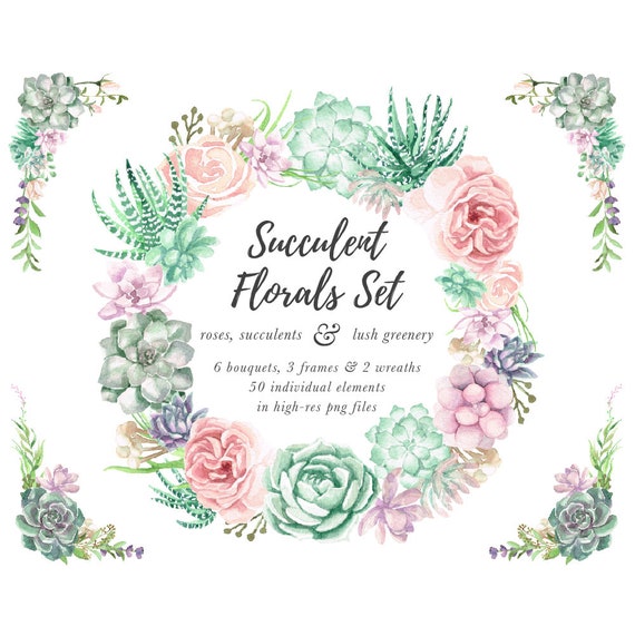 Watercolor Succulent Floral Elements Bouquet Clipart Etsy
