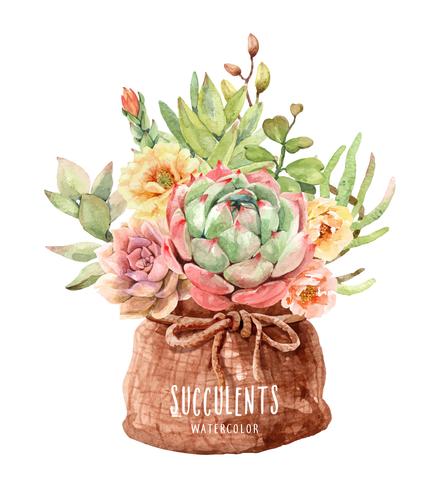 Watercolor Succulent Plant Vector Card Votanical Painted Vintage