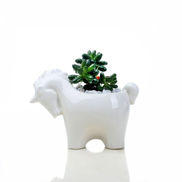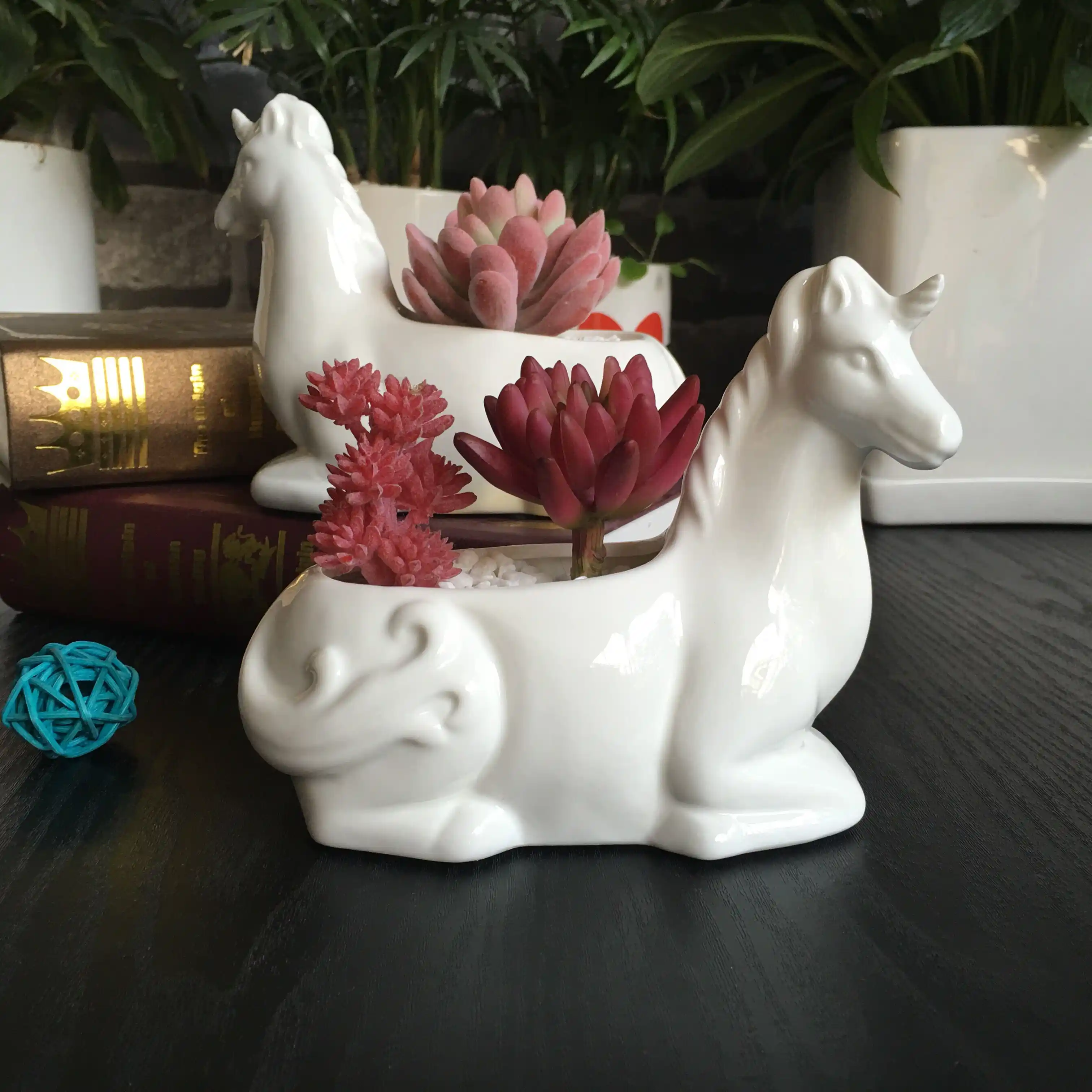 Ceramic Small Unicorn Flower Pot White Horse Flowerpot Planter