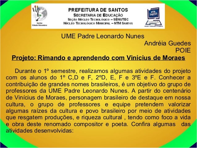 Atividades Projeto Vinicius De Moraes Cantinho Do Educador Infantil