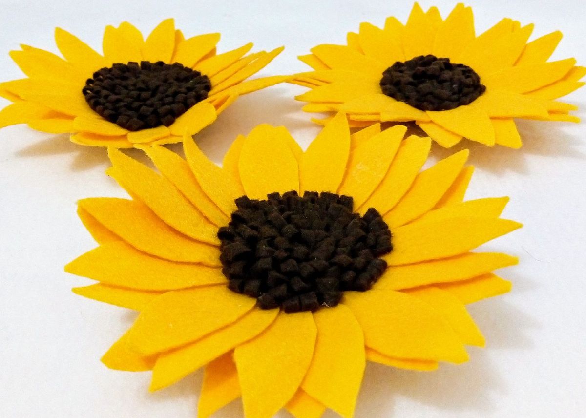 Kit Com 03 Flores De Girassol Em Feltro Para Artesanato Produto