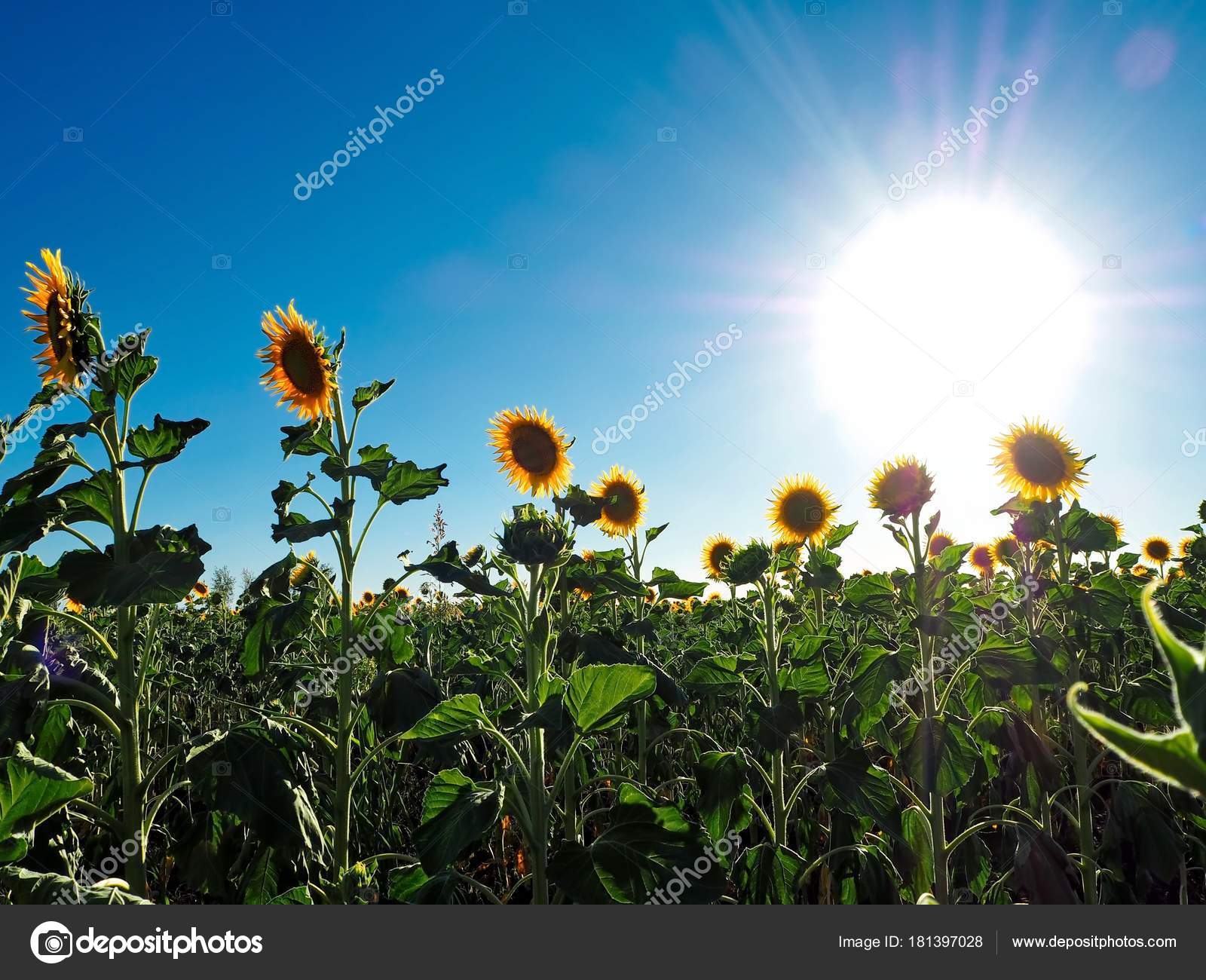 Girassol Na Luz Solar Quente No Pano De Fundo De Ceu Azul Foto
