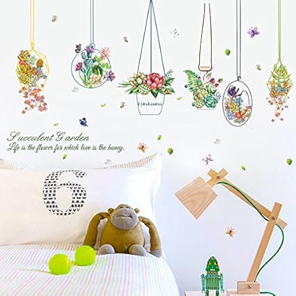 Amazon Com Ewqhd Succulents Basket Painting Wall Sticker Home